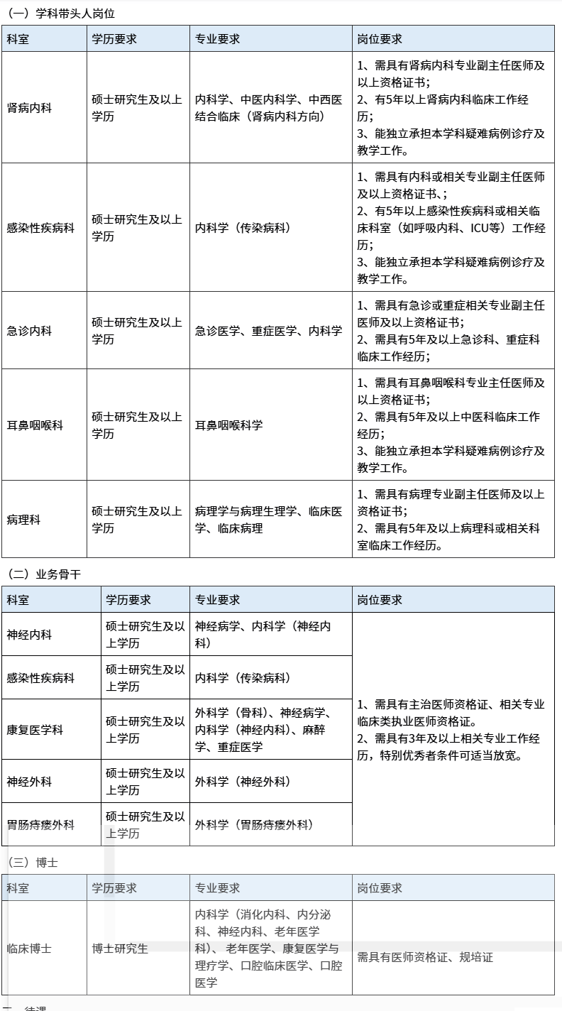 根据医院发展需要,面向社会招聘以下岗位人员: